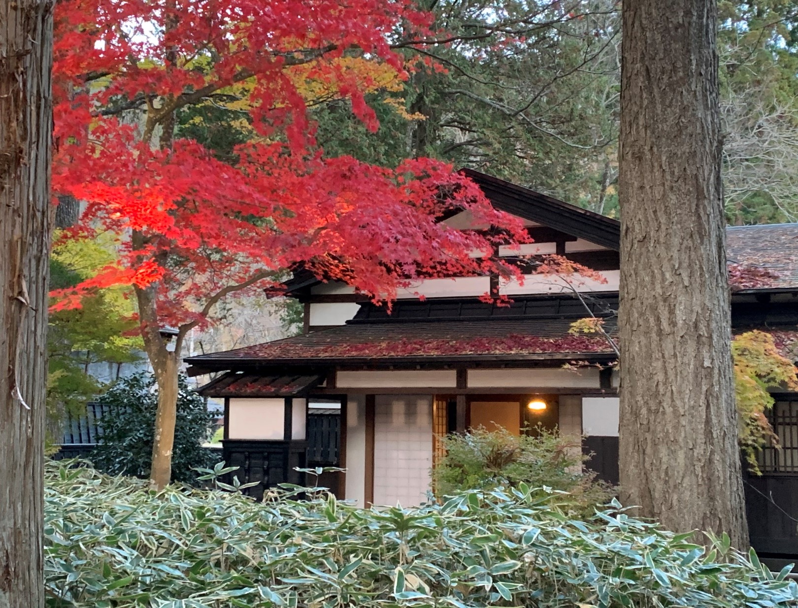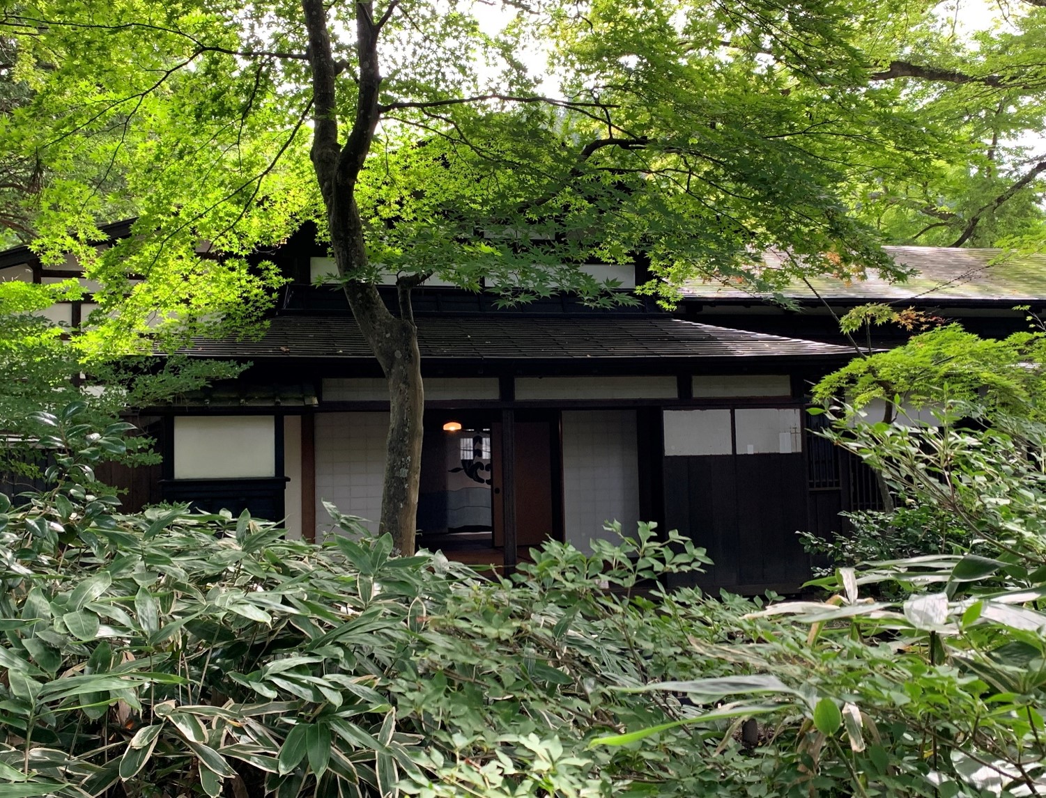 The main house was destroyed in the Great Fire of the Meiji Period, but was quickly rebuilt in a simplified style while retaining the appearance of a modern samurai residence. From the gate to the main house, there is a tunnel of Enkianthus campanulatus, which seems to represent a principle befitting a samurai residence. The garden is a dry landscape garden, but it is also rich in Kumazasa bamboo, and in autumn, the maples, Japanese maples, and Enkianthus campanulatus turn red and yellow, creating a magnificent scene reminiscent of a nishiki-e painting.