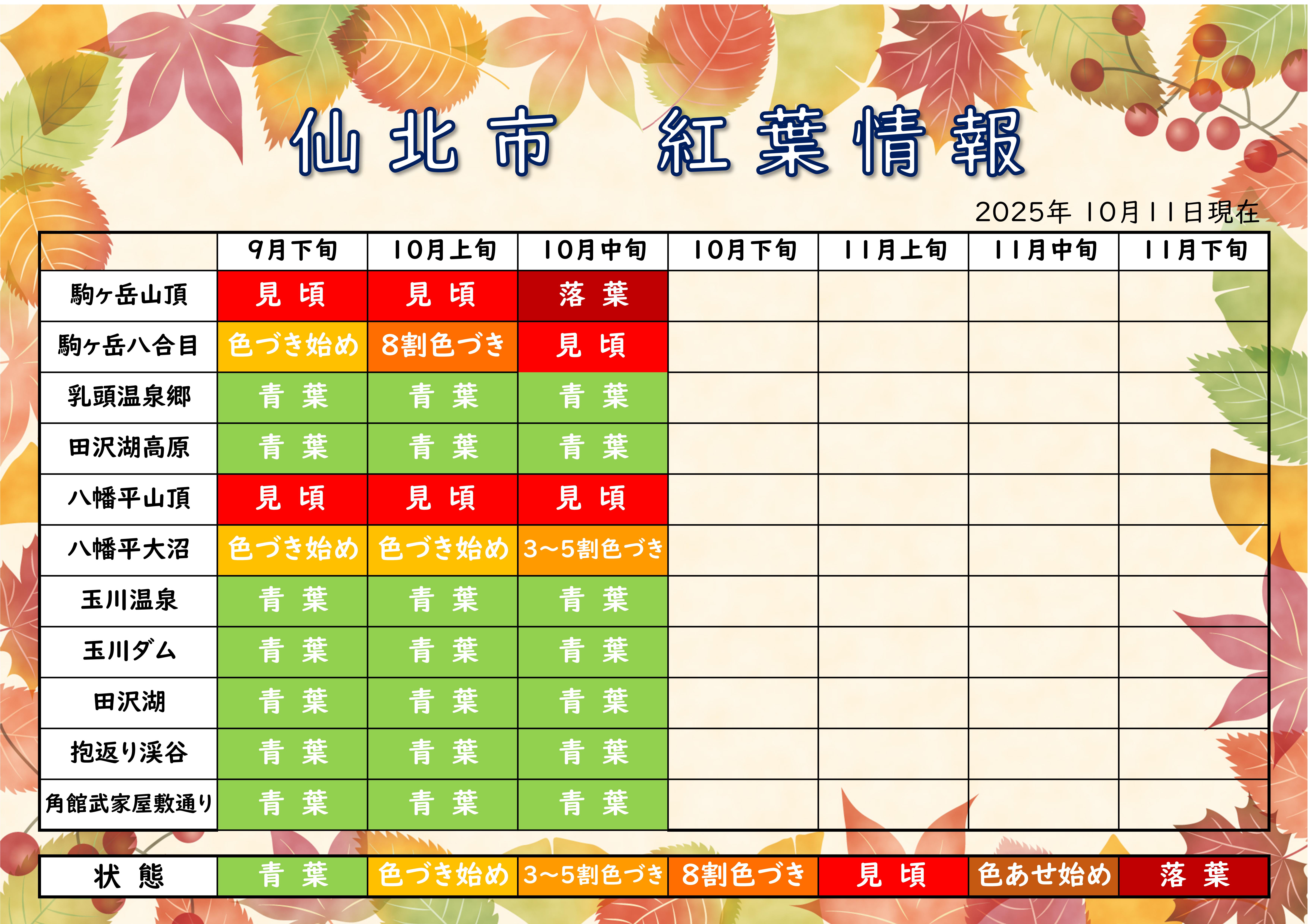 仙北市紅葉情報※令和7年10月11日(土)現在